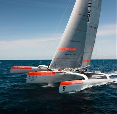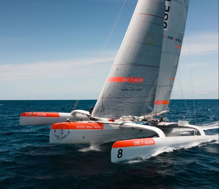 Au-delà du sport et des valeurs d'engagements associées à la course au large, le projet USE IT AGAIN promeut également l'économie circulaire et met en lumière la nécessité de protéger les océans.