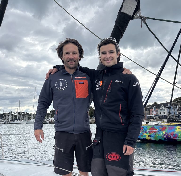 Le cabinet SNA Géomètre-expert a choisi de soutenir jusqu'à la route du rhum 2026 le projet de course au large USE IT AGAIN porté par un duo père-fils : Romain et Titouan PILLARD.